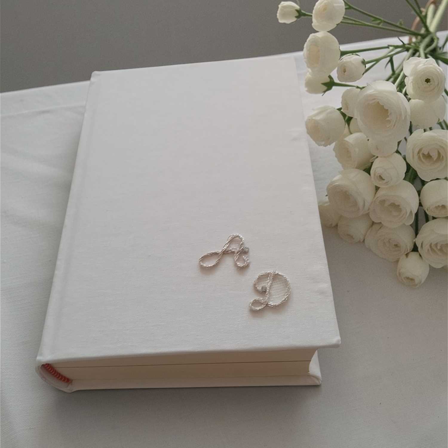 Forrada y adornada con las iniciales de la pareja.