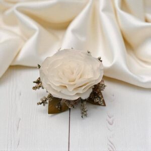- Adorno elaborado con rosa eterna que puede durar muchos años.