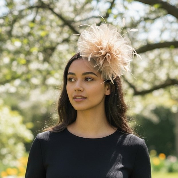 Tocado de Flor de tela hecha a mano en tono Ivory para todo tipo de ocasiones.